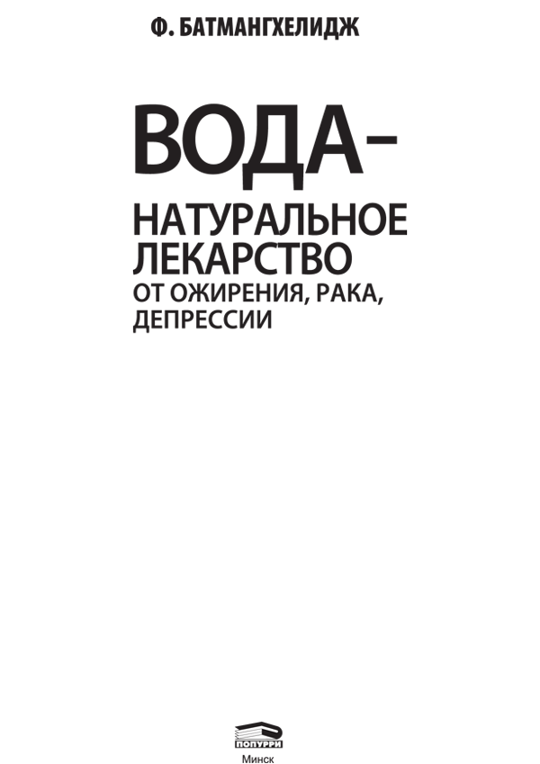 Вода — натуральное лекарство от ожирения, рака, депрессии / Ф. Батмангхелидж ; пер. с англ. О. Г. Белошеев. — Минск : Попурри, 2015..