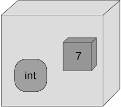 | Рис. 2.3. Имена указывают на объекты (переменная указывает на целочисленный объект со значением 7) |