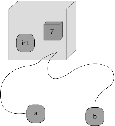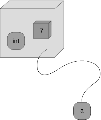 1. Как и раньше, присвойте значение 7 имени a. Это создаст объект-«ящик», содержащий целочисленное значение 7.