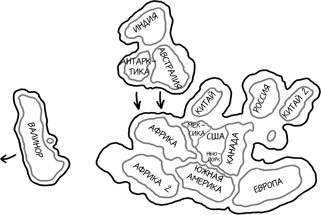 Миллиард лет назад континентальные плиты были собраны в один огромный суперконтинент. Это была не хорошо известная Пангея, но ее предшественник Родиния. Геологические данные не отличаются особой точностью, но мы предполагаем, что выглядела она примерно вот так: