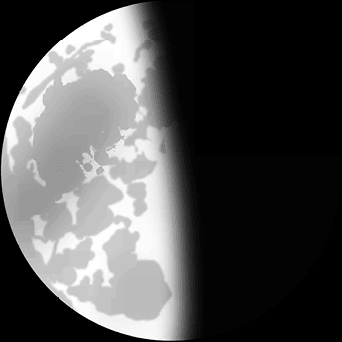 Давайте лучше возьмем фазу четверти луны, чтобы можно было сравнивать эффект наших лазеров на темной и светлой стороне.