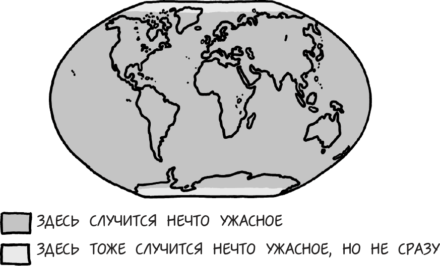 Когда-нибудь человечество вымрет. Никто не знает, когда именно[13], но ничто не живет вечно. Быть может, мы улетим к звездам и проживем миллиарды лет. А может быть, наша цивилизация рухнет, а мы все погибнем от болезней и голода, и последних из нас съедят бездомные кошки. Или нас всех убьют нанороботы, захватившие планету спустя всего несколько десятков лет после того, как вы прочли это предложение. Точно сказать нельзя.