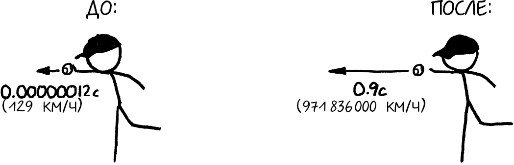 ВОПРОС: А что, если попытаться отбить бейсбольный мяч, брошенный со скоростью в 90 % от скорости света?