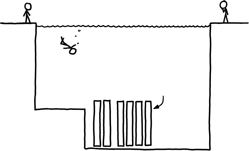 Мы точно знаем, что в бассейнах для отработавшего топлива можно плавать, потому что их регулярно обслуживают ныряльщики. Однако этим ныряльщикам нужно соблюдать осторожность.
