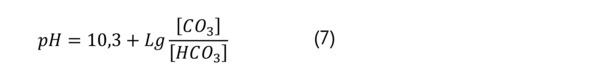 Полноту протекания данного процесса в деаэраторе можно оценить по значению рН воды после деаэратора. Значение рН воды после деаэратора будет определяться по отношению содержания карбонат-иона к гидрокарбонат-иону (уравнение Хендерсона-Хассельбальха для разложения бикарбоната HCO3=H+CO3)