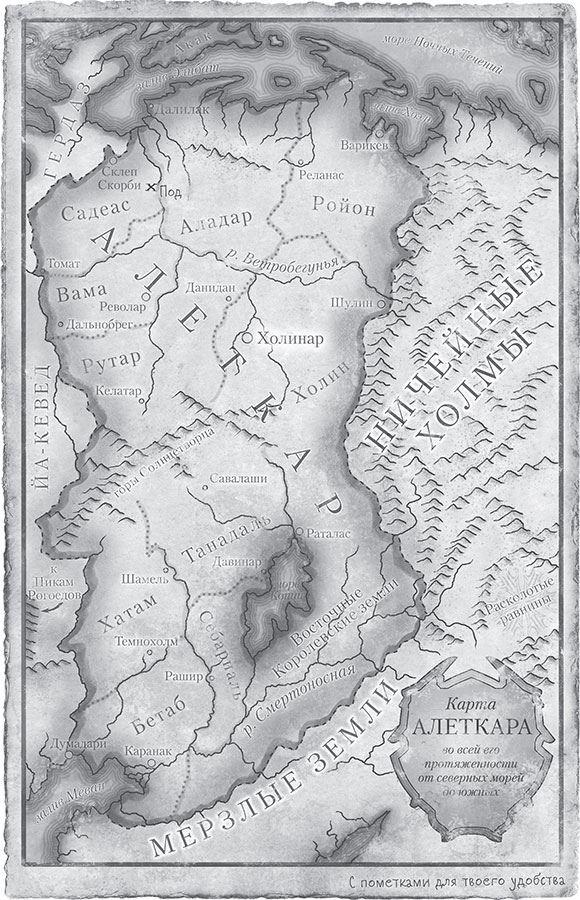 Если у вас не было возможности прочитать «Edgedancer» – отдельную новеллу, действие которой происходит между второй и третьей книгами, – рекомендую это сделать сейчас. Она продается сама по себе и в составе сборника «Arcanum Unbounded», в который включены новеллы и рассказы, относящиеся ко всему космеру – вселенной, в которой происходит действие этого цикла, «Рожденного туманом», «Элантриса», «Убийцы войн» и других.