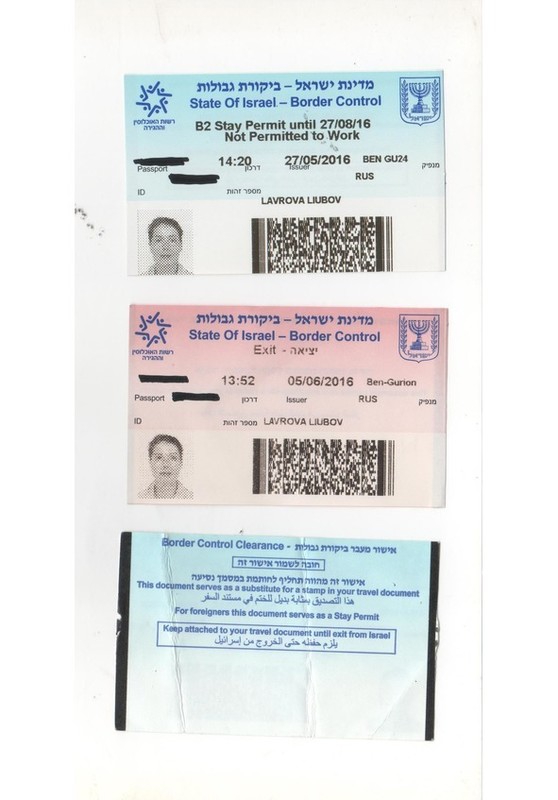 Так выглядят израильские талоны для въезда (голубой) и выезда (розовый).