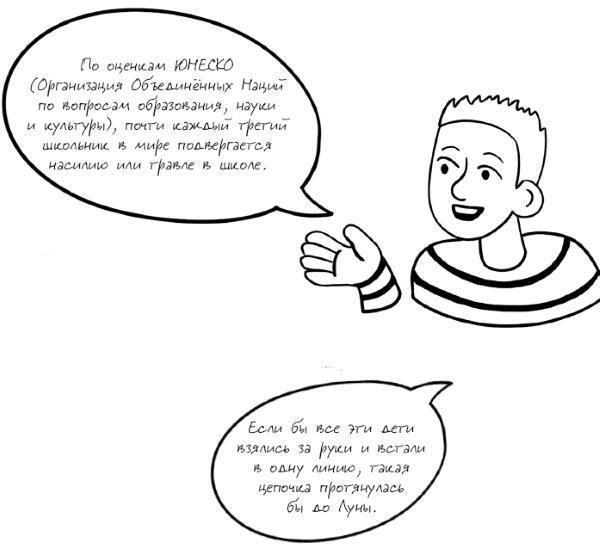 У каждого десятого мнение было иным. Они считали, что буллинг в школе – это нечто естественное, и взрослым туда лучше не лезть. Если ты тоже так считаешь, внимательнее читай эту книгу.