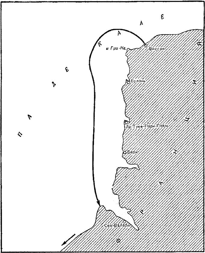 Мы плывем, зарываясь носом в волны, и ждем, что мотор вот-вот захлебнется. Но нет, пока все великолепно. «Хичхайкер» идет своим курсом в полном одиночестве. Па-де-Кале, этот столь оживленный в обычное время морской перекресток, сегодня пуст. Много раз море готово было нас поглотить, но в 18 часов мы благополучно пристаем к берегу близ Виссана. Опыт удался!