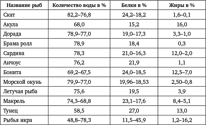 Таблица состава рыб ясно показывает, что с количественной точки зрения белков в рыбе более чем достаточно.