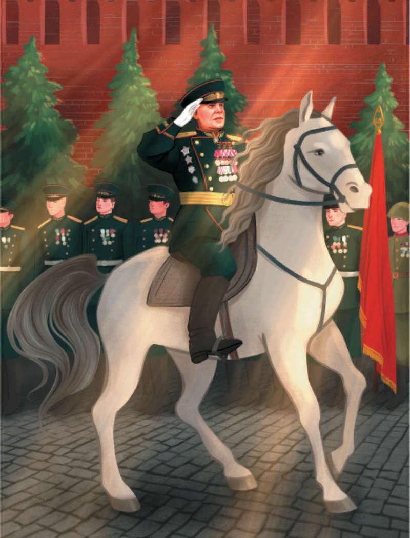 24 июня 1945 года Красная площадь сияла от орденов и медалей. Под бой курантов из Спасских ворот на белом коне выехал Маршал Советского Союза Георгий Жуков. Он принимал Парад Победы.