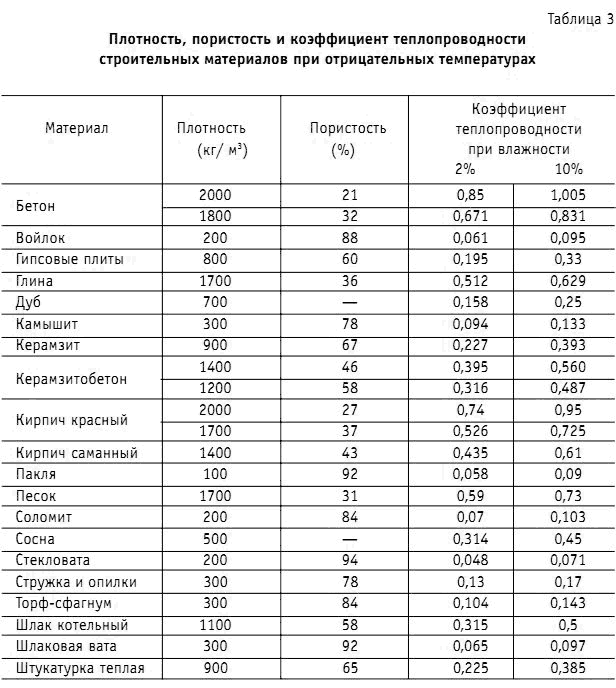 Значения всех этих показателей для наиболее часто встречающихся материалов приведены в таблице 3.