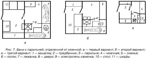 На рисунке 9 представлено три варианта банных конструкций, однако их размеры можно изменять в любую сторону.