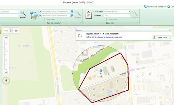 Пример зоны охвата в радиусе 300 метров: