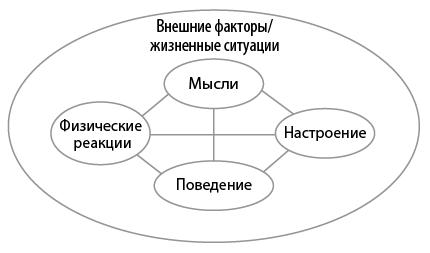 • У каждой проблемы пять составляющих: внешние факторы/жизненные ситуации, физические реакции, настроение, поведение и мысли.