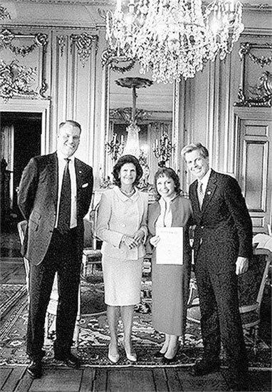 …Сорокапятилетний юбилей компании опять проходил в Нобель-холле. Все участники празднования в шесть заходов фотографировались с королевой. Когда дошла очередь до нас, а мы туда приехали всей семьей, с Маргаритой и со Снежанной, но уже без Тамиллы, нас представили королеве Швеции Сильвии: