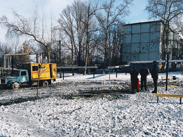 Обстрел по адресу Чапаева, 4 случился на следующий день после такого же происшествия в соседней с Донецком Макеевке. Настолько напряжённой была обстановка в Донбассе в конце января 2017-го года. Даже из центра города отчётливо различаются разрывы снарядов где-то на окраине. Ведь расстояние до линии фронта — меньше десяти километров.