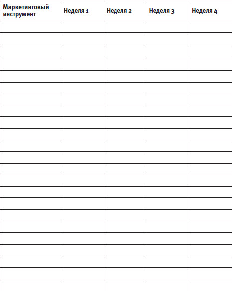 Разбивка по неделям, месяцам и кварталам поможет избежать как скученности, так и разреженности применяемых маркетинговых инструментов. И кроме того сделает вас более дисциплинированными.