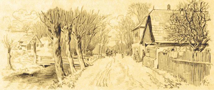 Перед домом, чуть не вплотную к палисаднику, вдоль глубокой канавы с водой, прорытой мельником от плотины к мельнице, бежала тропинка. Через канаву был перекинут мостик к сушильне с печью. Осенью, когда в сушильне стояли полные корзины слив, яблок и груш, Ян и Вилим частенько бегали туда, таясь от бабушки. Но, войдя в сушильню, старушка каким-то чудом всегда угадывала, сколько слив недостает и по чьей вине.