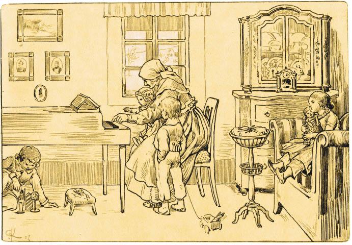 На блестящие лаковые столики и шкафчики она старалась ничего не ставить («Еще поцарапаю!»), а застекленную горку, полную всяких безделушек, обходила стороной «от греха подальше». А вот дети любили скакать рядом с ней и иногда что-нибудь разбивали. Тогда матушка делала шалунам строгое внушение. Зато бабушка с удовольствием подсаживалась к пианино, держа на коленях малышку Аделку, если та капризничала, потому что ребенок замолкал, когда старушка принималась тихонько постукивать по клавишам. Барунка даже пробовала научить бабушку наигрывать одним пальцем «А вот кони, а вот кони...», и бабушка кивала в такт и подпевала, приговаривая: