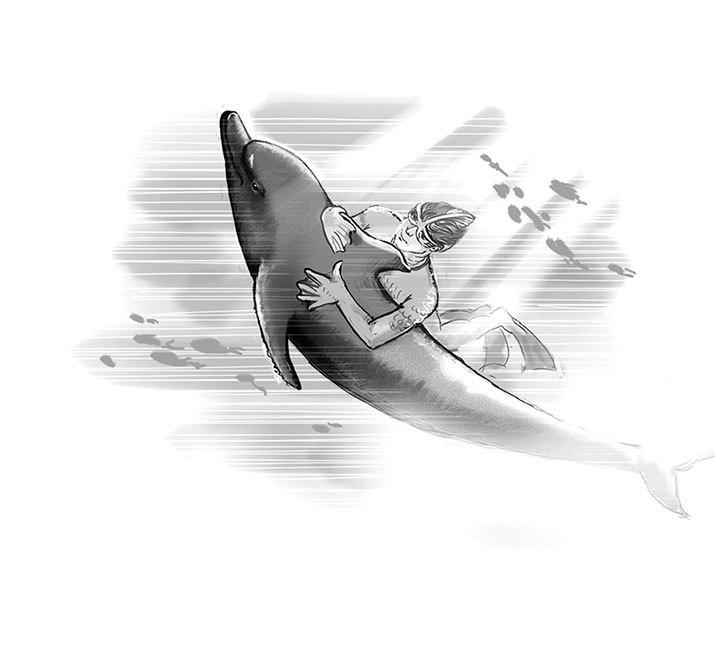 Известно, что дельфины, охотясь за рыбой, помогают рыбакам тем, что загоняют ее к отмели. Рыбаки же часто выручают из беды дельфинов. Следы когтей могли быть произведены пальцами человека. Воображение придало следам вид когтей.