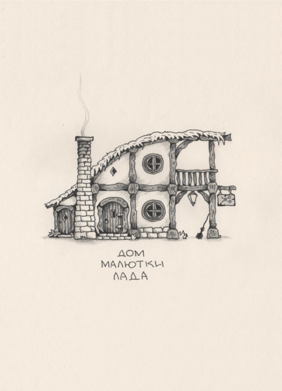Вскоре он оказался возле своего дома со старой, треснувшей от времени вывеской над входом, на которой был намалёван уже сильно истёртый от времени рисунок, когда-то изображавший ножницы. Это был их семейный мастеровой герб, его покойного батюшки Добромысла, славного мастера портных дел. Отодвинув тяжёлый засов двери, он с тяжёлым усилием своих слабых рук со скрипом открыл её. Внутри в глаза сразу бросалась мебель, сбитая явно под хозяина, размером почти вполовину меньшая от любой другой привычной для глаза. Усевшись на одну из своих низких табуреток, он задумчиво раскурил свою любимую трубку и уставился невидящим взглядом в свой погасший камин. Обидный смех девицы не уходил из его головы. А Малютка Лад уже принял решение. Его торбочка уже стояла готовая в дорогу, тут же, рядом, в углу комнаты. В ней был нехитрый скарб: горсть сухарей, банка василькового варенья, моток ниток с иглой, чистая запасная рубаха, нож, огниво с кисетом и пучок сушёных целебных трав. Он собрал её давно, ему нужен был только последний решающий толчок. Торговка сдобой дала его. И он наконец-то решился.