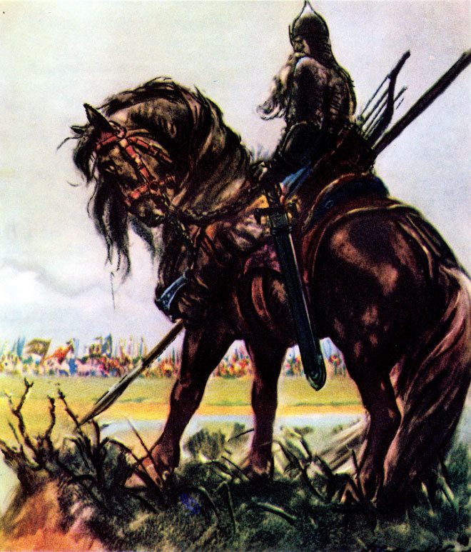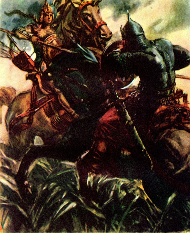 В русском героическом эпосе, так же как и в германских, исландских, индейских и персидских эпических сказаниях, богатыри вступают в битву с фантастическими, мифическими чудовищами, преодолевая сверхчеловеческие препятствия на своем пути к заданной цели. Но, разумеется, без идеи защиты русских земель от набегов полчищ завоевателей, без идеи укрепления и защиты национального государства, выраженной языком народа, показанной в исторически самобытных картинах национальной жизни, не было бы и знаменитых произведений, вошедших в историю мировой художественной культуры под общим названием "Былины".