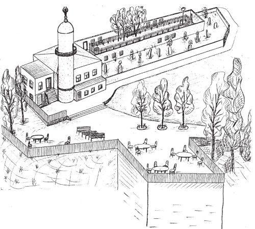 Рис. 8. Комплекс сооружений на Бейкосе. Справа – огороженное решеткой и двойной стеной пространство, называемое «могилой» Иисуса (Юши). План составлен Т.Н. Фоменко в 1995 году [6т2]