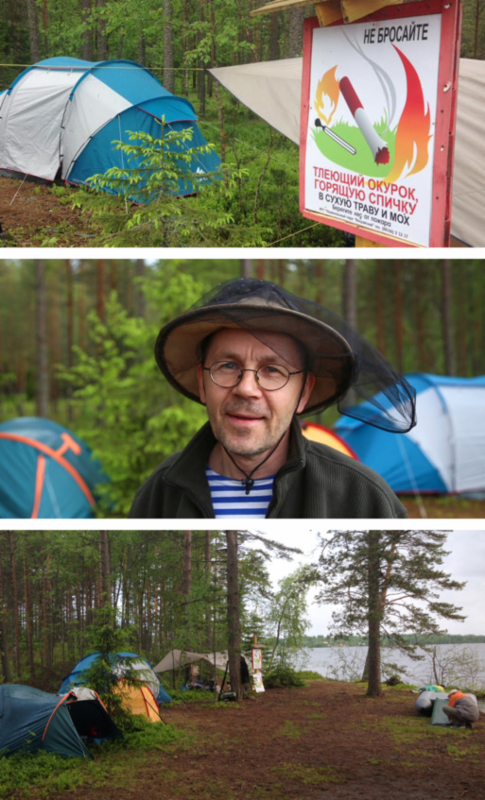 На берегу нас душевно встретили Сергей Бутров и Александр Чурадаев из Саратовского клуба. Коньяк зашёл чудесно, вместе с комарами и …тучами. Решили не ждать милости от природы и обустроили лагерь — маленькую Рязань. Растянули монументальный тент, разложили походный стол и стулья. Выпили и сухими встретили прибывающих партиями гостей со всей курительной Росссии. Виски всех перезнакомил. Артур Шиляев привёз чемодан сигар, тут же их и закурили. В таком дыму шансов у комаров стало значительно меньше.