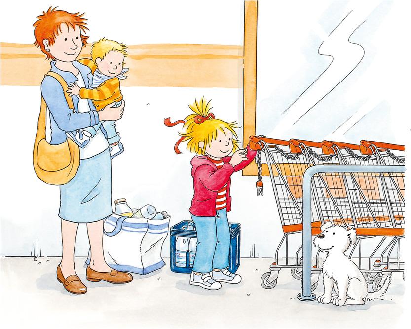И им обязательно нужно сходить за продуктами. Почти все их домашние запасы исчерпаны. Даже муки на пирог не хватит. А ещё мама хочет сдать пустые бутылки. Конни складывает их в большую сумку, пока мама одевает младшего брата Конни, Якоба. И вот наконец они садятся в машину и едут по делам.