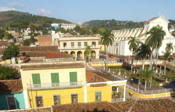 Карибское море золотилось под солнцем справа от дороги. Слева возвышались покрытые густой зеленой растительностью горы — Сьерра-де-Эскамбрай. А над автобусом кружила гигантская птица. Я спросил у Роберто не орел ли это. Нет, ответил он, это гриф. Перед Тринидадом мы заехали в горный лес и пообедали в крестьянском кафе. Пока размещались за столами, каждому бесплатно от заведения был вручен местный алкогольный коктейль. Позднее я заметил, что такова традиция всех ресторанчиков Кубы: первый коктейль — каждому в подарок от хозяев заведения. За еду платить не надо, а вот за повторный напиток (при желании его употребить) — надо. Но первый — везде бесплатно. Мне это понравилось.