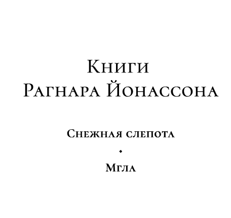 Действие романа разворачивается на фоне завораживающих пейзажей пустынного исландского нагорья и величественных фьордов, затерянных среди скал. «Мгла», первый роман в трилогии, мгновенно стал мировым бестселлером и занял верхние строчки престижных литературных рейтингов, а Рагнар Йонассон закрепил за собой титул «короля скандинавского нуара».