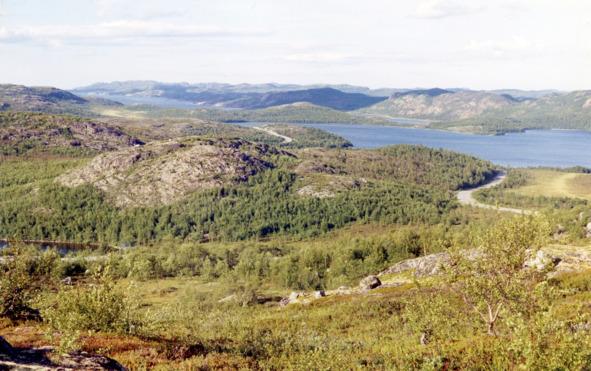 По направлению к востоку горные тундры сменяются типичными равнинными пространствами с болотами, низкой кустарниковой растительностью, покровом из ягельного мха и оленьими пастбищами.