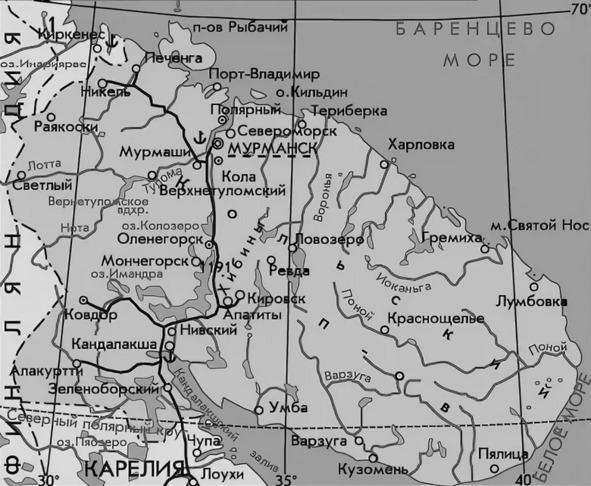 В книге норвежского автора приводится краткая и расплывчатая справка о путях проникновения северных соседей в Заполярье из Финляндии и Норвегии[4]. Первые финны проложили путь к Баренцеву морю в середине XVIII века, где обосновались в долинах фьордов и на морском побережье, приспособившись к жизни в суровых условиях. Через столетие открылся «коридор» для потока работящих финских бедняков. Притягательной силой были богатые рыбой воды Баренцева моря и внутренних водоемов, неудовлетворительная жизнь на родине. Финско-норвежская экспансия распространяется до полуострова Рыбачий на севере и до Кольского залива на востоке. Возникал вопрос, почему она не двинулась далее на восток, ответ на него требует специального исследования.