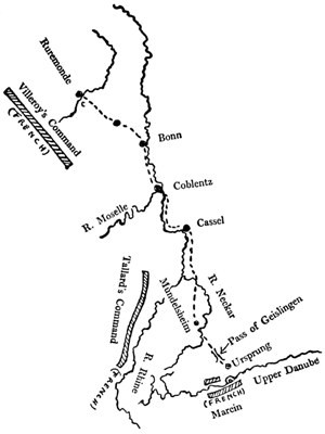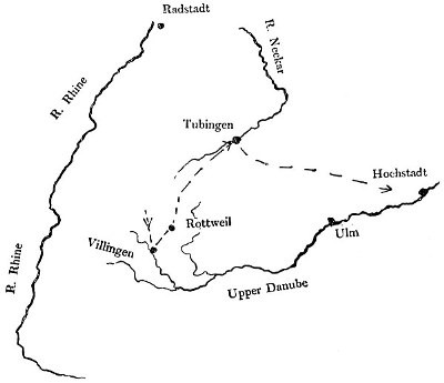 Map showing Eugene’s March on the Danube from the Black Forest