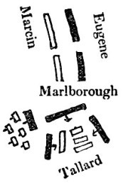 Map illustrating the March of Marlborough and Baden across Marcin’s front,