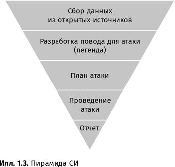 Согласно плану, намеченному в пирамиде, вторая глава («Видите ли вы то, что вижу я?») посвящена сбору данных из открытых источников. В ней описаны техники, которые остаются актуальными независимо от времени. Я старался не слишком углубляться в описание специальных инструментов, хотя все же упомянул те, которые использовал на протяжении последнего десятилетия.