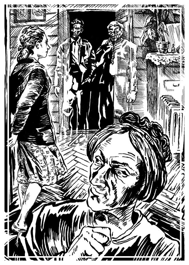 Свет в детской гаснет. Старый дом скрипит, и кажется, будто по чердаку кто-то ходит. Дядя все еще висит сверху. Его видно в слабых отблесках уличного фонаря, свет которого проникает через щелочку в плотных шторах. Глаза Ленки слипаются.