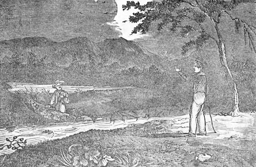 Rollo followed the path along the banks of the brook under the trees, until at length he came out to the open ground where Jonas was at work. There was a broad meadow, or rather marsh, which extended back to some distance from the brook, and beyond it the land rose to a hill. Just at the foot of this high land, at the side of the marsh farthest from the brook, was a pool of water, which had been standing there all summer, and was half full of green slime. Jonas had been at work, cutting a canal, or drain, from the bank of the brook back to this pool, in order to let the water off. The last time that Rollo had seen the marsh, it had been very wet, so wet that it was impossible for him to walk over it; it was then full of green moss, and sedgy grass, and black mire, with tufts of flags, brakes, and cranberry-bushes, here and there all over it. If any person stepped upon it, he would immediately sink in, except in some places, where the surface was firm enough to bear one up, and there the ground quivered and fluctuated under the tread, for some distance around, showing that it was all soft below.