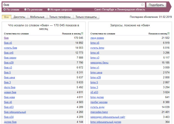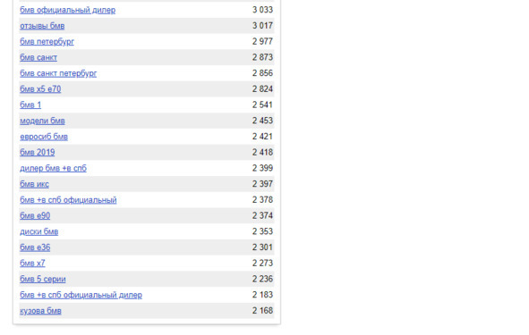 Введите в вордстате слово — бмв. Без кавычек и прочего, сейчас нам интересна общая картина: