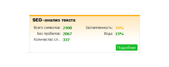 — Заспамленность — не больше 35%, «вода» — не больше 15% по тому же text.ru;