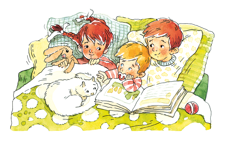 — Ура! Как здорово! — закричали дети, соскочили с кроватей и побежали в другую комнату к маме. Они танцевали и обнимали её.