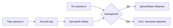 Кроме того, умение выделять неподходящих людей на старте помогает избежать ошибок, которые могут стоить значительных эмоциональных и временных затрат. Чёткое понимание своих требований позволяет быстрее выявить несоответствие и прекратить общение до того, как оно перерастёт в эмоционально затратные отношения.