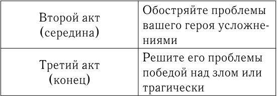 Таким образом, ваш второй акт вырастает из проблем, осложняющих кризисную ситуацию, обозначенную в первом акте. Во втором акте проблемы эти множатся и громоздятся, пока протагониста не выносит в третий акт. Теперь он должен или преуспеть в любви, или потерпеть фиаско, или победить врагов, или погибнуть.