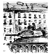 Слева и справа идёт сражение. Не пропускают герои танки.