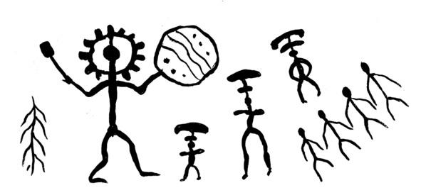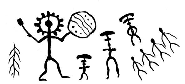 Невысокий шаман хрупкого телосложения не носил камни, а перемещал их по воздуху мановениями своей руки. При этом он дул в небольшой свисток, издававший высокие, почти неслышимые уху звуки. Когда работа была закончена, шаман прошёл по лабиринту и неожиданно в его центре взлетел на полметра над поверхностью земли. Что-то ему, видимо, не понравилось, и строитель лабиринта поменял местами несколько камней. Пройдя ещё раз между каменных спиралей, он поднялся уже метра на три и, видимо, остался доволен своим творением — порталом для перемещения души в верхние миры.