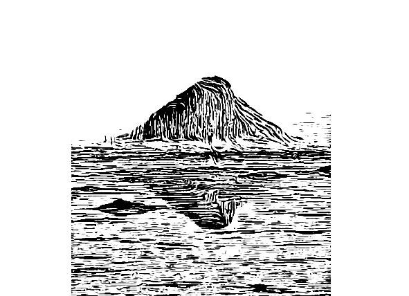 Если посмотреть на остров сверху, то видно, что это единый энергетический комплекс. Он состоит из двух капищ на искусственных горах, когда-то излучавших вверх мощные потоки энергии. По склонам серпантином проложена «тропа шамана» — гигантский лабиринт между пирамидальными кладками с кристаллами-излучателями на их вершинах.