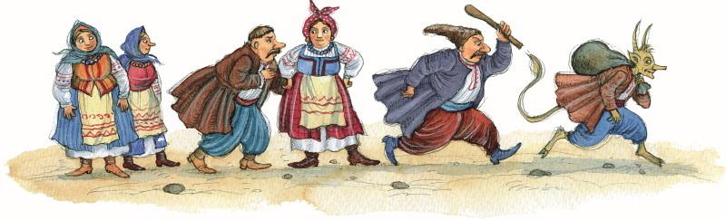 Если бы в это время проезжал сорочинский заседатель на тройке обывательских лошадей, в шапке с барашковым околышком, сделанной по манеру уланскому, в синем тулупе, подбитом черными смушками, с дьявольски сплетенною плетью, которою имеет он обыкновение подгонять своего ямщика, то он бы, верно, приметил ее, потому что от сорочинского заседателя ни одна ведьма на свете не ускользнет. Он знает наперечет, сколько у каждой бабы свинья мечет поросенков, и сколько в сундуке лежит полотна, и что именно из своего платья и хозяйства заложит добрый человек в воскресный день в шинке. Но сорочинский заседатель не проезжал, да и какое ему дело до чужих, у него своя волость. А ведьма между тем поднялась так высоко, что одним только черным пятнышком мелькала вверху. Но где ни показывалось пятнышко, там звезды, одна за другою, пропадали на небе. Скоро ведьма набрала их полный рукав. Три или четыре еще блестели. Вдруг, с противной стороны, показалось другое пятнышко, увеличилось, стало растягиваться, и уже было не пятнышко. Близорукий, хотя бы надел на нос вместо очков колеса с комиссаровой брички, и тогда бы не распознал, что это такое. Спереди совершенно немец: узенькая, беспрестанно вертевшаяся и нюхавшая все, что ни попадалось, мордочка оканчивалась, как и у наших свиней, кругленьким пятачком, ноги были так тонки, что если бы такие имел яресковский голова, то он переломал бы их в первом козачке. Но зато сзади он был настоящий губернский стряпчий в мундире, потому что у него висел хвост, такой острый и длинный, как теперешние мундирные фалды; только разве по козлиной бороде под мордой, по небольшим рожкам, торчавшим на голове, и что весь был не белее трубочиста, можно было догадаться, что он не немец и не губернский стряпчий, а просто черт, которому последняя ночь осталась шататься по белому свету и выучивать грехам добрых людей. Завтра же, с первыми колоколами к заутрене, побежит он без оглядки, поджавши хвост, в свою берлогу.