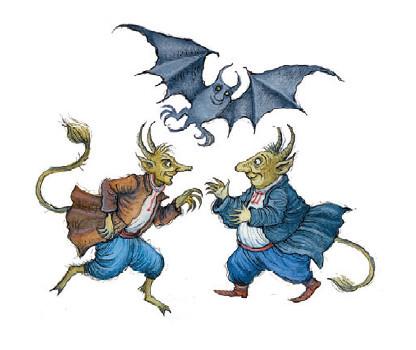Между тем черт крался потихоньку к месяцу и уже протянул было руку схватить его, но вдруг отдернул ее назад, как бы обжегшись, пососал пальцы, заболтал ногою и забежал с другой стороны, и снова отскочил и отдернул руку. Однако ж, несмотря на все неудачи, хитрый черт не оставил своих проказ. Подбежавши, вдруг схватил он обеими руками месяц, кривляясь и дуя, перекидывал его из одной руки в другую, как мужик, доставший голыми руками огонь для своей люльки; наконец поспешно спрятал в карман и, как будто ни в чем не бывал, побежал далее.