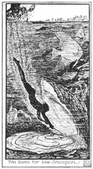Loudly did they weep and wail, running about the brink of the pool, which looked so shallow and so clear, but which had swallowed up their princess before their eyes. They even sprang into the water and tried to dive after her, but in vain; they only floated like corks in the enchanted pool, and could not keep under water for a second.